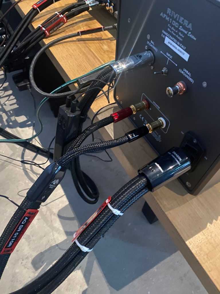 Franck en compagnie de confrères Français a pu y réaliser des écoutes comparatives, confirmant ce que nous savons déjà : le choix des câbles transforme littéralement l’expérience musicale. Les mêmes appareils, les mêmes enceintes, les mêmes sources… mais des câbles différents. Et une musique qui change de dimension.