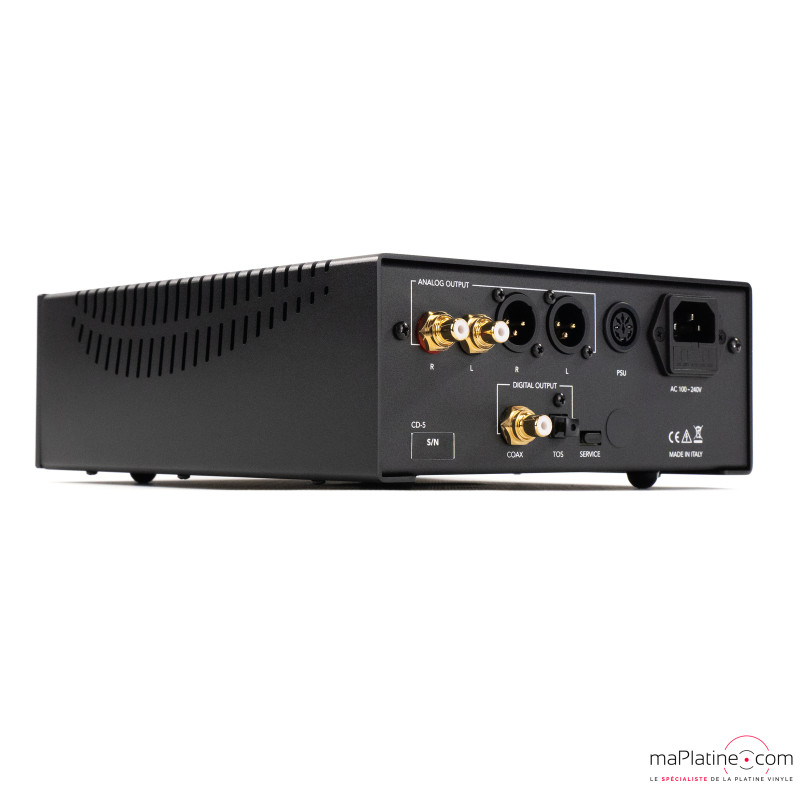 The signal is converted into a highly faithful analog output. Every component, from the mechanical chassis to the electronic circuits, has been carefully selected and tested to deliver the best possible musicality without any distortion.