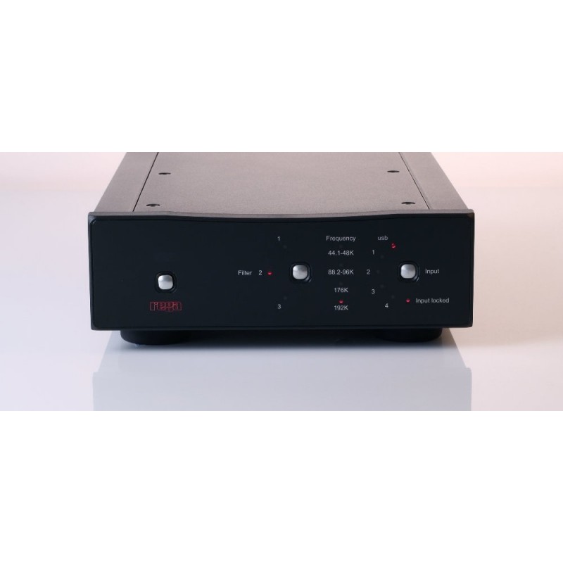 On the front panel of the Rega DAC R are 3 buttons: the first, on the far left-hand side, switches the device on and off, the second selects a filter (see technical specifications) and the third selects one of the 5 inputs.