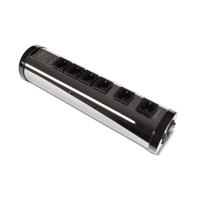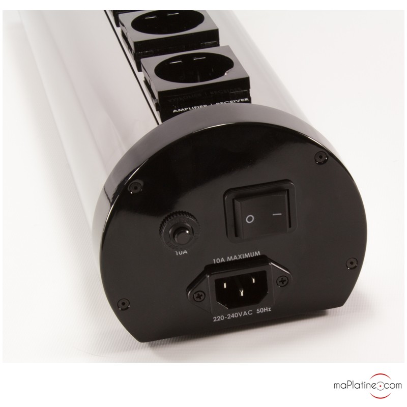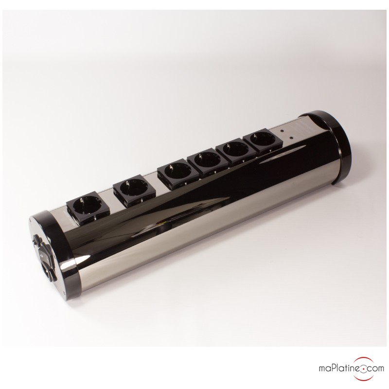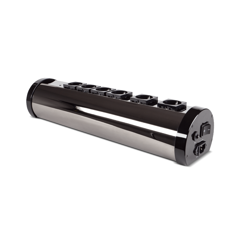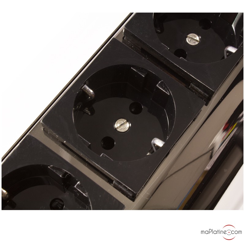 Following many successful years with its power cables, Audioquest has developed a current distributor specifically designed for audio applications. The Niagara 1000 power strip is a bulky yet unique strip. The 6 Shuko outlets are arranged on a glossy black aluminium tube. They are made of silver-plated beryllium copper. It uses the NDS (Noise Dissipation System) technology. This Audioquest-patented technology includes ultra-linear filtering capacitors associated with low resistance wiring and minimum impedance connectors.