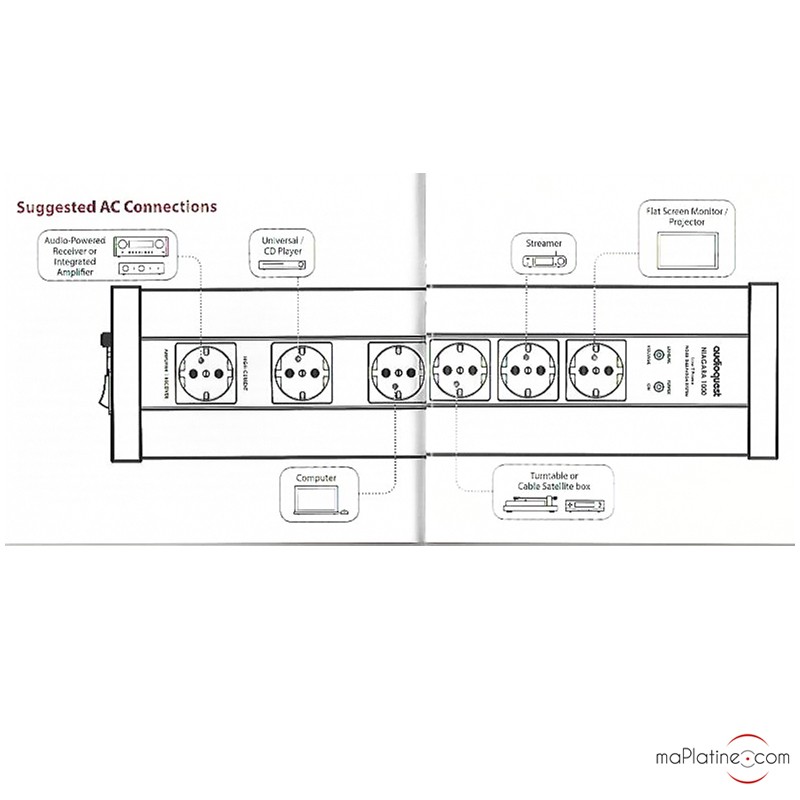 Let's go straight to the point! We connected our Hi-Fi system to Audioquest's Niagara 1000 power strip (vinyl turntable, phono preamplifier, preamplifier, amplifier, DAC and server). The effects are immediately perceptible! There is no need for a blind test, reproduction is significantly improved in transparency and subtleness. The dynamics span more evenly across the entire spectrum. It removes the veil and harshness that used to be heard. We were amazed by the quality of the stereo image and player positioning.
