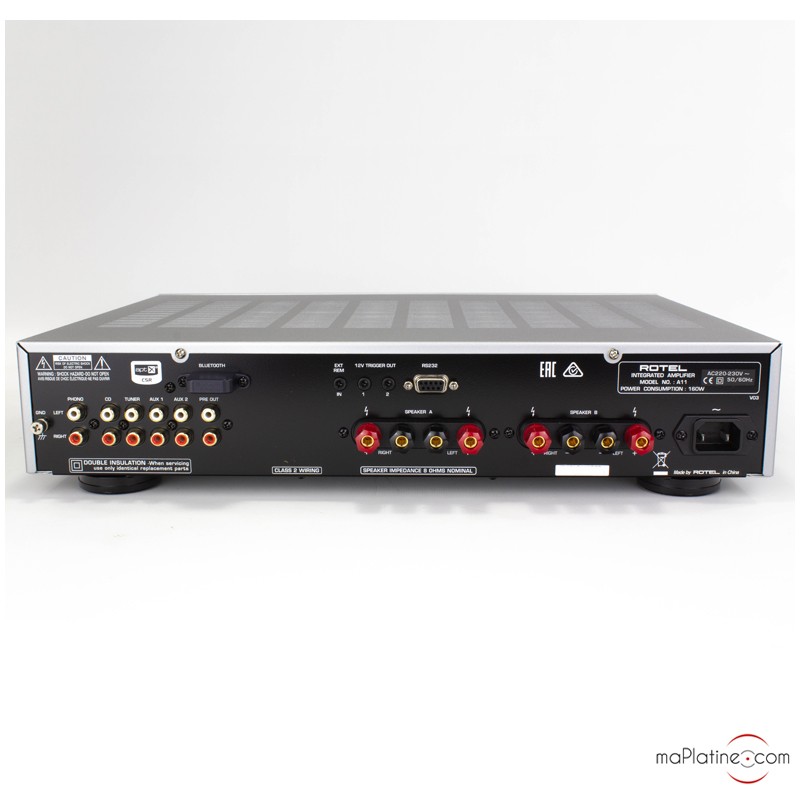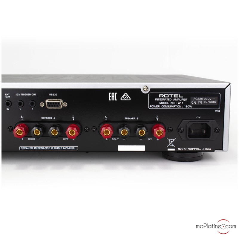 Très bon conseil de Franck. Cet amplificateur s'adapte à merveille à mes enceintes B&W pour une très belle qualité sonore. Très simple d'utilisation, surtout avec une platine Rotel (une seule télécommande pour les 2). Qualité de finition top. Service Ma Platine parfait!