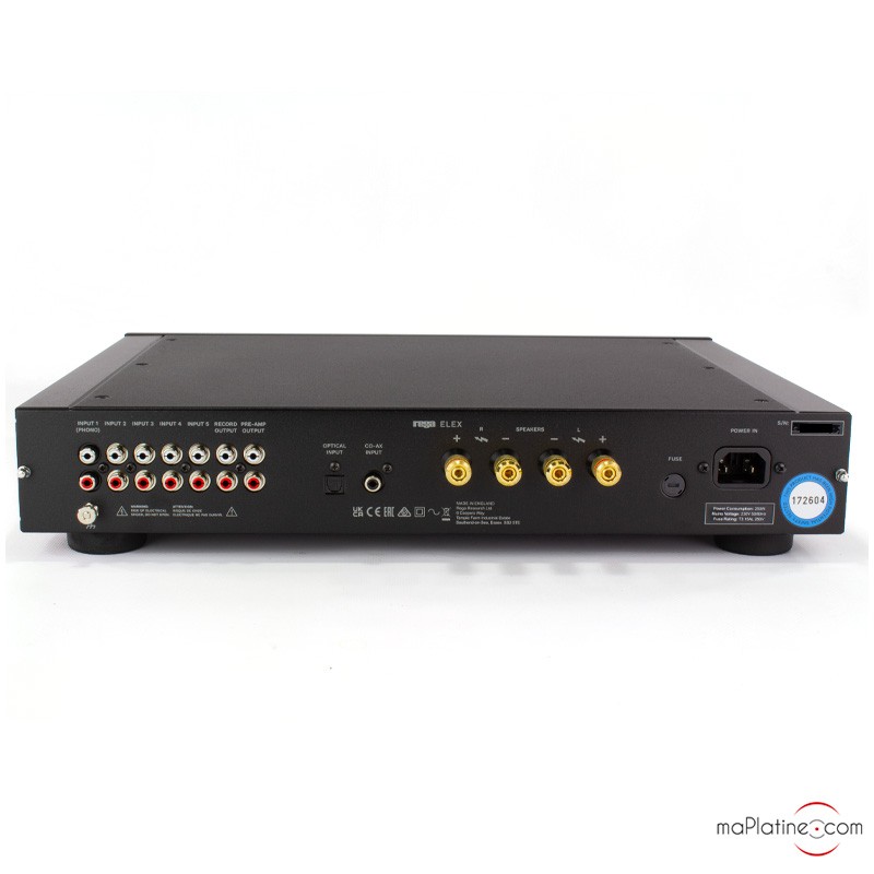 Un avis pour le dernier Elex R de MaPlatine. Materiel d'écoute : lecteur CD Marantz 6044 et Rotel RCD 06. Platine vinyle Audiotechnica AT-LP 140 XP et Technics 1210 MK2. Tuner Nad 414. Enceintes Cabasse Iroise 500. Après 2 semaines d'écoute je peux dire que parmi tous les amplis qui sont passés dans mes mains, celui-ci mérite un bon 5 étoiles. Opéras, Oratorios, Symphonies, Quatuors, Piano, tout est remarquable, le son est clair, chaud, les voix sont d'une pureté éblouissante. Ce qui ne gâte rien, on monte le volume, la puissance un bien là. Bref, je recommande cet ampli sans réserve. Un grand bravo à MaPlatine, commande livrée rapidement, emballage parfait. Rega fidèle à sa réputation. Philippe des Yvelines