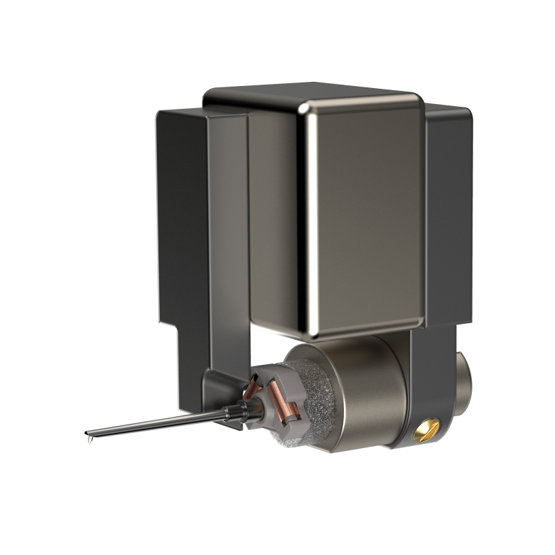 The screws are mounted through threaded inserts integrated into the cartridge body for easy installation. The connection pins are thickly gold-plated to reduce contact resistance and improve sound quality.