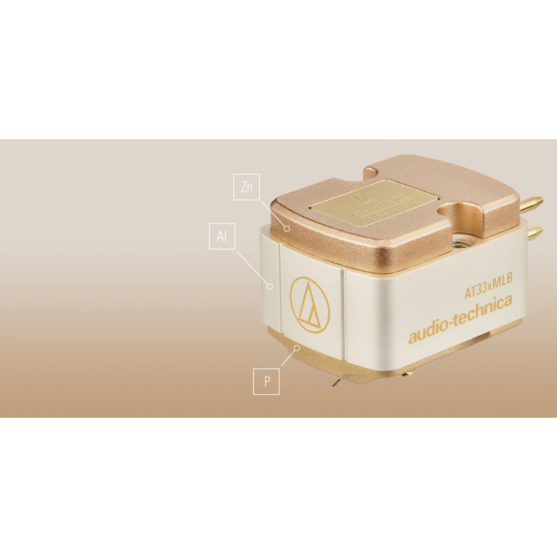 Each body of the AT33x series cartridges is composed of three distinct materials: die-cast zinc, aluminium and a high-rigidity polymer. These are optimally arranged to reduce and disperse resonance throughout the cartridge body. With this sandwich construction, no frequency predominates during playback, resulting in balanced and natural sound reproduction.
