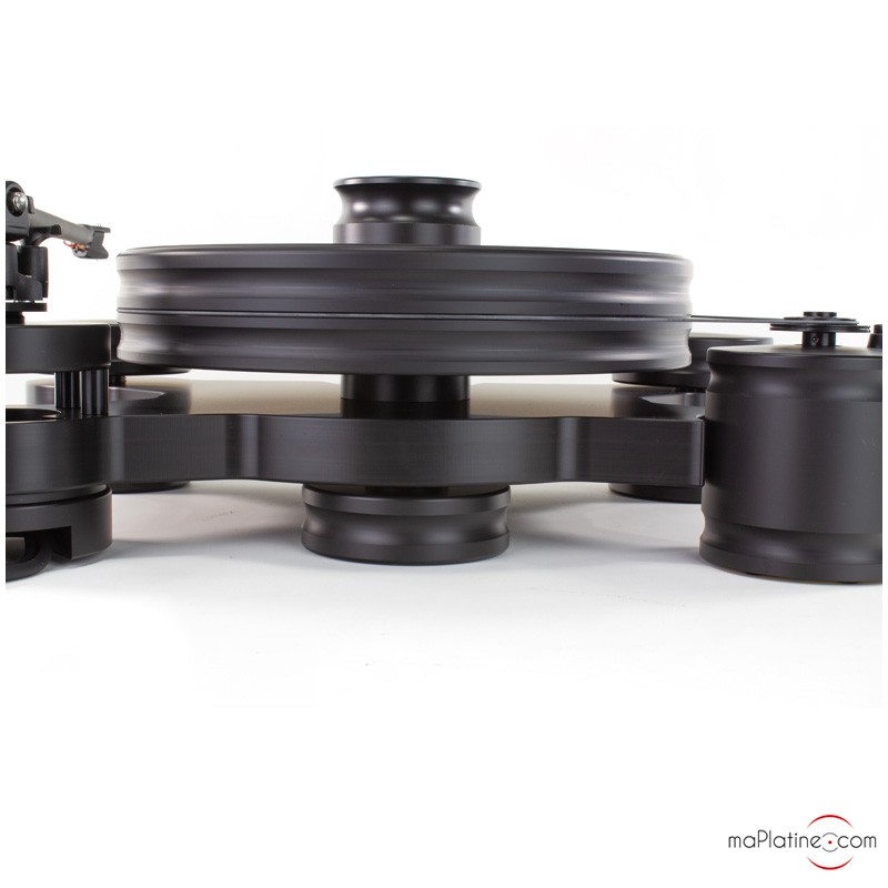 Tout d'abord je voulais une platine construite avec des matériaux les plus neutres possible, un moteur découplé du châssis, un plateau assez lourd pour une bonne inertie, et pour vous dire aussi je trouvais son look super sympa.