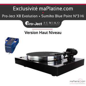 This package includes the Pro-Ject X8 Gloss Black turntable mounted with a Sumiko Blue Point No.3 Hi MC cartridge.