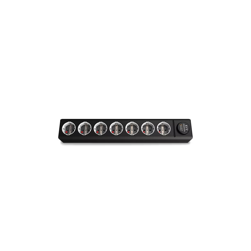 The Essential Audio Tools Mains Multiplier 7 is not just a simple standard power strip. It is made from POM-C using a precision CNC machine. This high-quality synthetic material combines superior electrical insulation and is less sensitive to vibrations. Mains Multiplier 7 is equipped with damping feet to eliminate mechanical vibrations.
