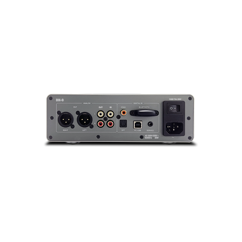 Le Rotel DX-3 est équipé d’un DAC ESS Sabre ES9028PRO. En aval de ce convertisseur numérique-analogique (DAC), des filtres de sortie analogiques sont implémentés en externe à l'aide de composants discrets conçus sur mesure par Rotel afin d’obtenir une précision musicale exceptionnelle. Il peut traiter le signal jusqu'à 32 bits/384 kHz à partir de l'entrée PC-USB, du 24 bits/192 kHz via les entrées coaxiales et optiques, et du Bluetooth aptX™ HD.