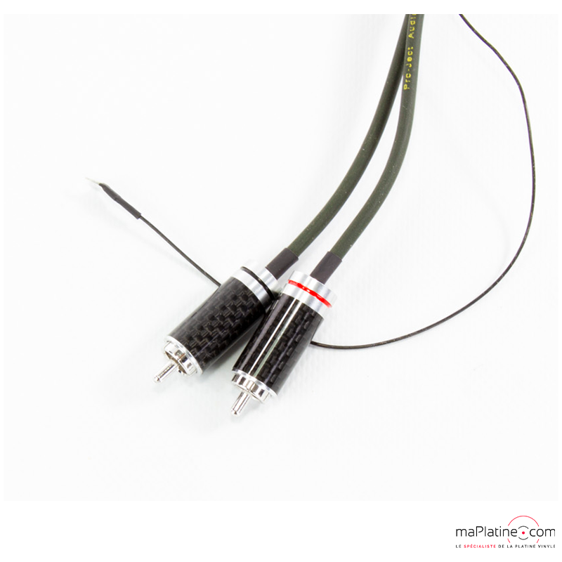 Le blindage est assuré par une hélice en OFC revêtue d'argent pur, avec une sous-jaquette conductrice offrant à la fois une protection optimale et une grande flexibilité du câble. Le Connect It RS Phono RCA est équipé de connecteurs RCA en cuivre plaqué rhodium, recouverts d'un boîtier en carbone non conducteur.