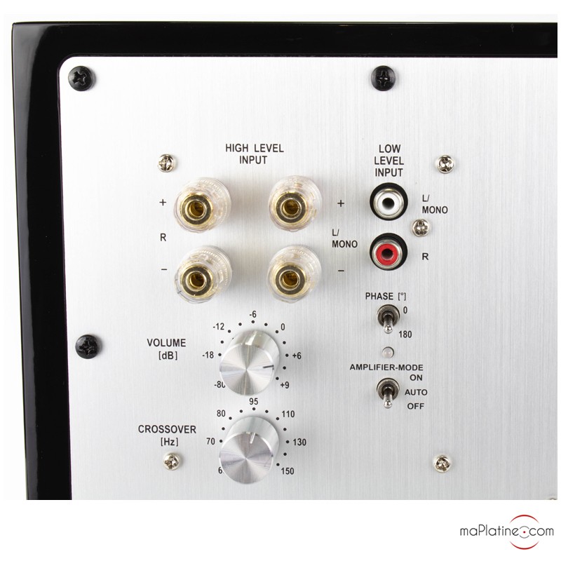 Un switch propose un mode auto qui coupe le Sub en l’absence de signal (pendant 10 mn) et l’allume en présence d’un signal.
