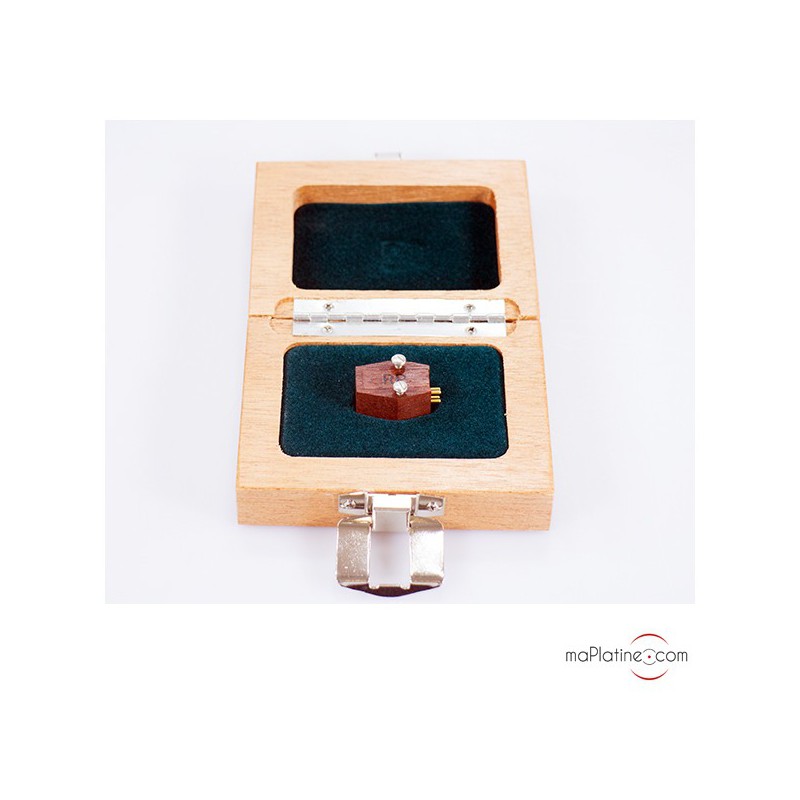 Avec la Grado Platinum-1, nous sommes toujours en présence d’une cellule Moving Iron. Ce principe de fonctionnement cher au constructeur New Yorkais fait usage de quatre pièces OTL. Mais ici dans une version modifiée et allégée de 10 % en comparaison à la gamme Prestige. L’ensemble de la cellule a subi une cure de jouvence par rapport à l’ancienne génération, et particulièrement la bobine et l’équipage mobile qui ont vu leur masse réduite de 17 %. Le câblage interne utilise des conducteurs de très grande pureté en cuivre UHPLC (ultra High Purity Long Crystal). Son coffret est usiné à la main dans une pièce de bois de Jarrah. Cet arbre originaire d’Australie, allie dureté et légèreté, donnant une bonne neutralité acoustique à cette cellule. Le diamant de profil elliptique est monté sur un cantilever en laiton. Comme toute la production Grado, elle est assemblée et testée dans l’unité de production historique de la marque à Brooklyn aux USA.