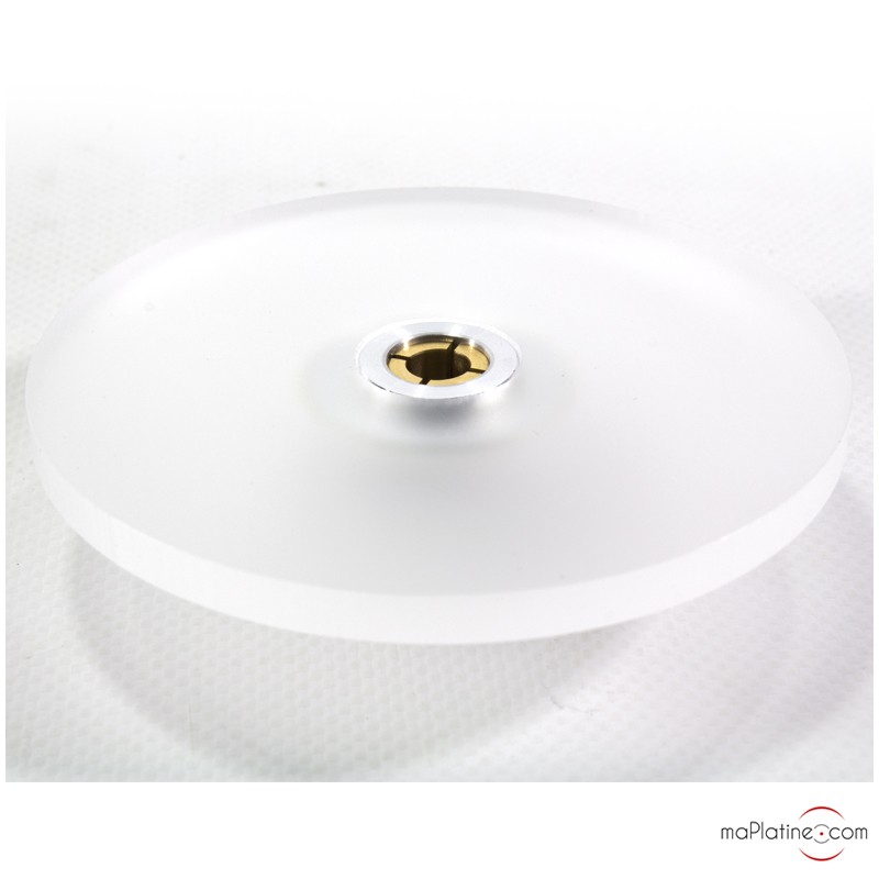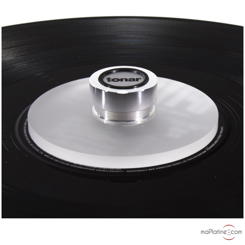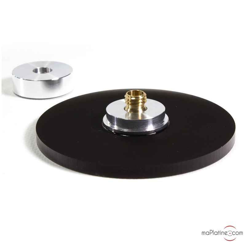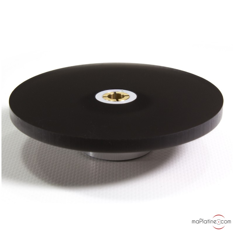 Je ne voulais pas d'un palet lourd ayant un platine Thorens TD160 donc suspendu et c'est pas du tout recommandé ! Ce palet presseur ira bien à toutes mes platines dont le clône de la Technics SL 1200 DJ... Produit, très facile à serrer autour de l'axe de la platine, il plaque le vinyl contre le plateau avec un effet de ventouse malgré le feutre ! Petit bémol, ne marche pas avec les 45 tours !