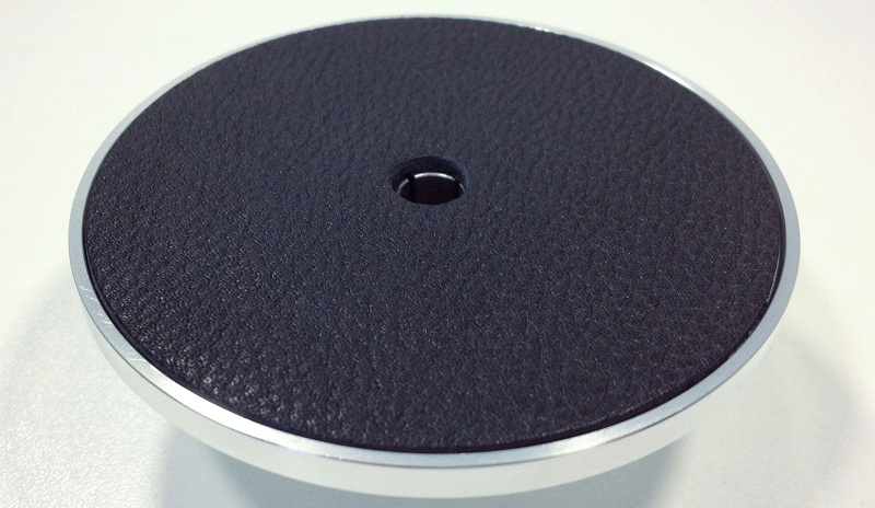 La surface en contact avec le disque vinyle est notamment recouverte d’un magnifique cuir noir aniline.