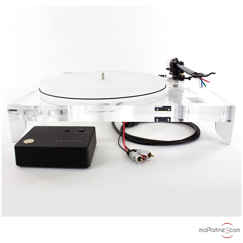 Je m'étais fixer une fourchette de prix pour la platine, et l'objectif de rester en MM, (plus "gérable" que du MC, mais ce n'est que ma position personnelle), et après discussion avec Franck sur les bras, moteurs, cellules, j'ai suivi mon idée première de choisir Gold Note.