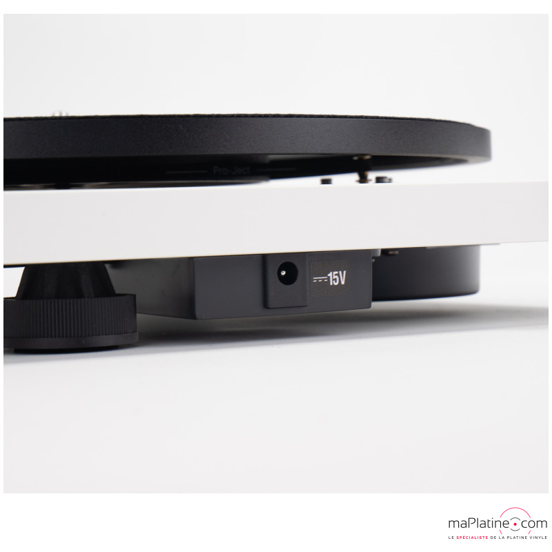 La Pro-ject E1.2 est proposée en 3 finitions, Noir brillant, satin blanc (mat) et imitation bois. La plinthe est en MDF usinées par une machine CNC.