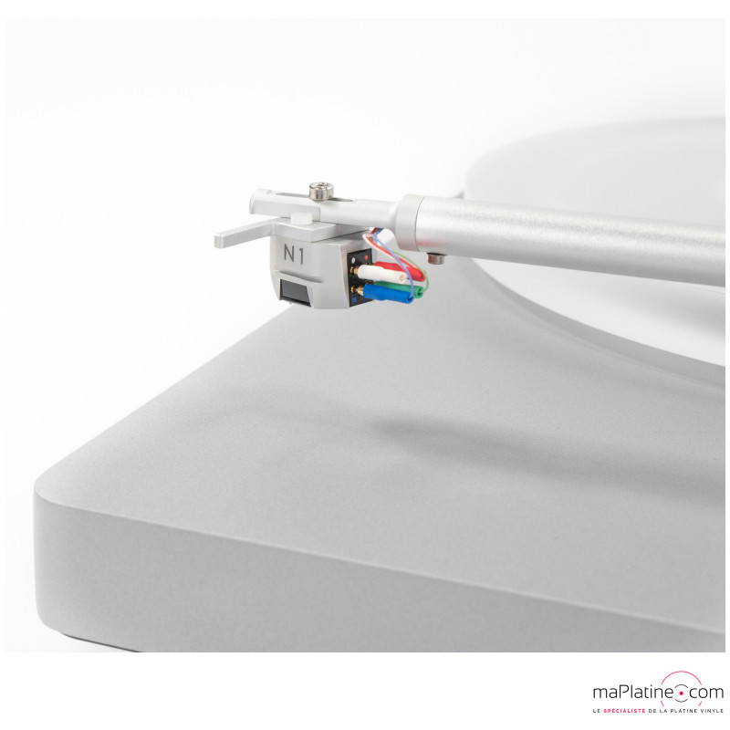 Clearaudio a conçu nouveau bras de lecture, le T1. C’est une version simplifiée du célèbre Clearaudio Satisfy. Il est associé à la nouvelle cellule à aimant mobile MM Clearaudio N1. Celle-ci a été spécialement développée pour la platine Compass et le bras T1. Elle propose des performances remarquables dans cette gamme. Le bras est aussi équipé d’un lève-bras en aluminium que se baisse en douceur. Il est équipé d’un cable phono captif (direct wire) d’un 1.10 m.