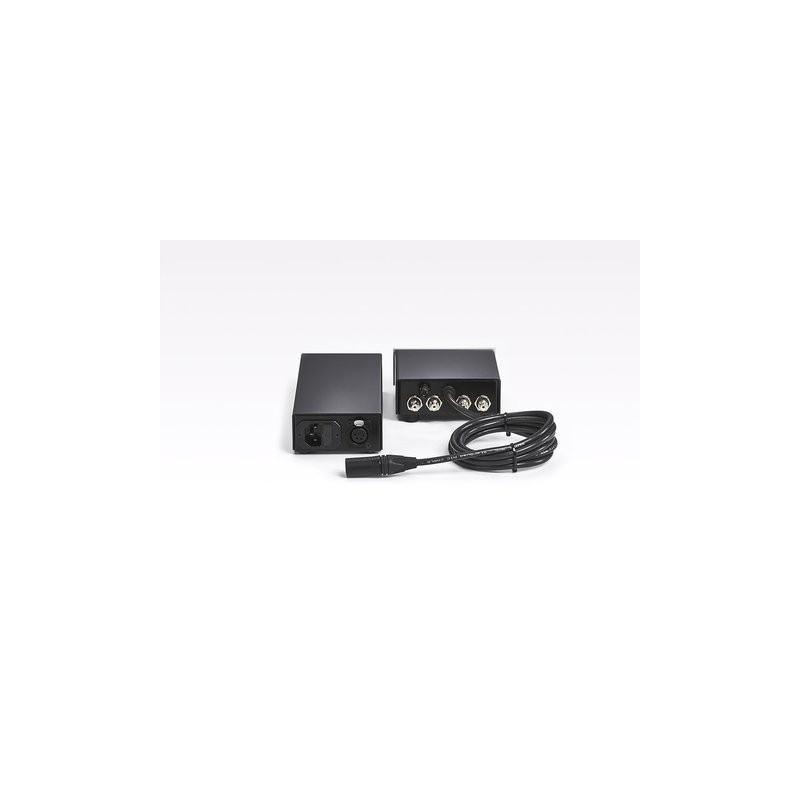La prise XLR Neutrik pour la liaison entre l'alimentation et la partie audio est proposée avec contacts plaqués or. Elle est ornée d'une bague d'identification orange.