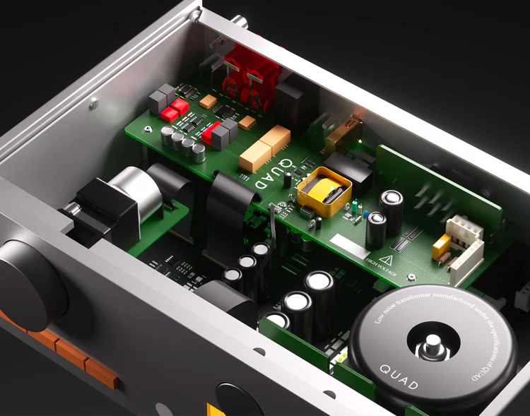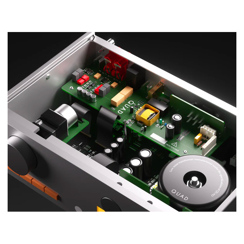 Le tout nouveau préampli phono est compatible avec les cellules à aimant mobile (MM) et à bobine mobile bas niveau (MC). Cet étage a été particulièrement soigné et offre des performances inédites pour un appareil de cette gamme. Il utilise uniquement des composants à très faible bruit et avec des spécifications de distorsion très faibles. Avec un gain de 46 dB pour le MM et de 63,5 dB pour Quad 33 est compatible avec la majorité des cellules phono du marché.
